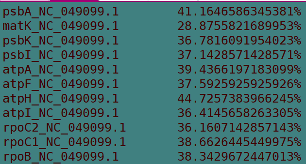 共两列,第一列为序列ID,第二列为对应序列的GC含量(%)